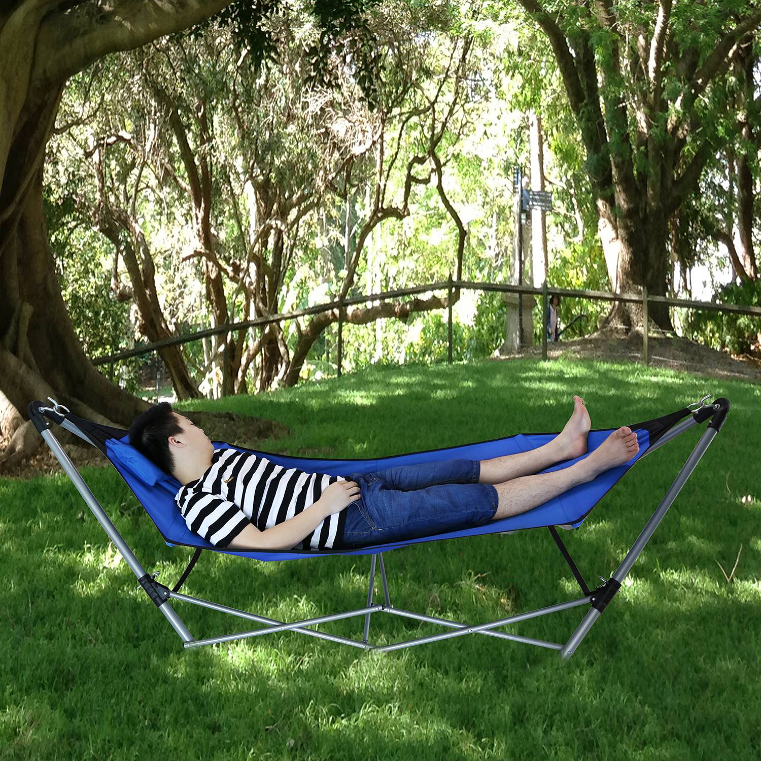 This highly portable and foldable hammock comes with a pillow and a carry bag, which has shoulder straps. It’s easy to store, travel with and set up. Its stainless steel frame and high quality fabric material ensures great durability. Take this with you to camp, hike, etc., breathe fresh air in to get totally relaxed, have great time in holidays!
